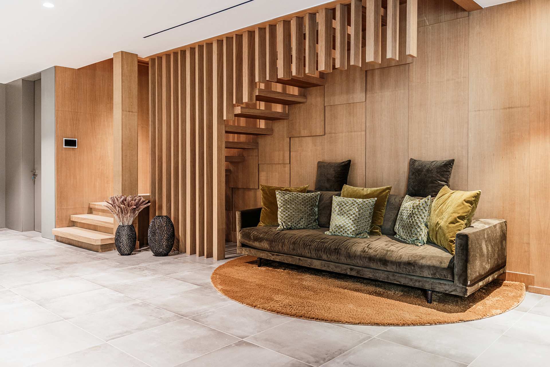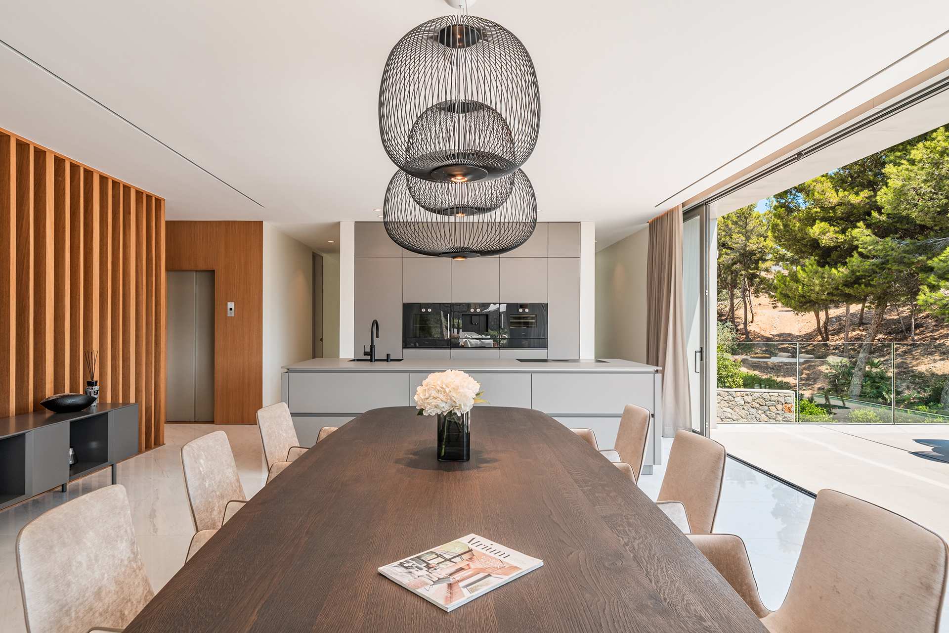 La amplia azotea con impresionantes vistas al mar invita a disfrutar de momentos inolvidables, mientras que el nivel de vida impresiona con habitaciones luminosas con transiciones fluidas entre el salón-comedor y la moderna cocina de lujo con electrodomésticos Gaggenau & Bora. El elegante interior atemporal con sillas Freifrau, cálidos tonos de madera y un claro lenguaje de diseño crea un ambiente acogedor con los más altos estándares de diseño.