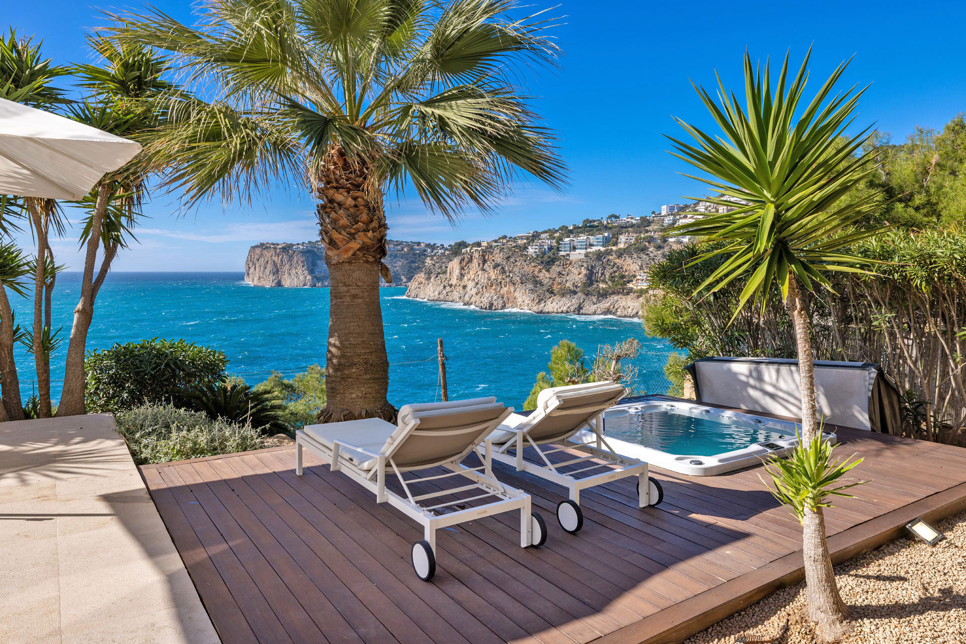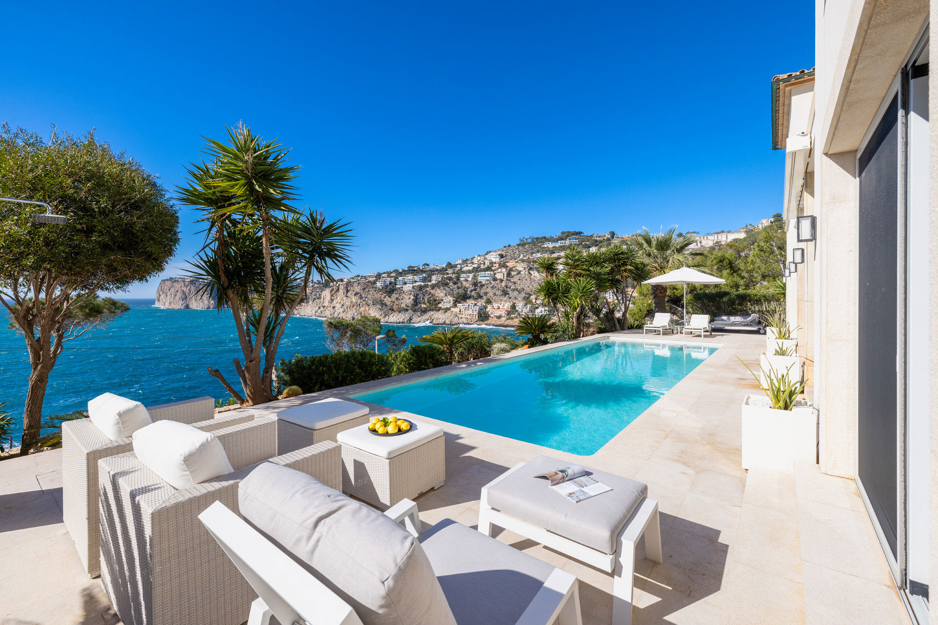 Die Villa ist mit modernster Technik ausgestattet: Smart-Home-Steuerung, Sonos-Soundsystem, Kamera- und Alarmanlage, Fußbodenheizung, Klimaanlage, Wärmepumpe und Solarthermie. Hochwertige Marken-Highlights wie eine Birgit Müller Küche und Occhio Beleuchtung unterstreichen den kompromisslosen Qualitätsanspruch. Die Villa liegt in der begehrten Bucht Cala Llamp, unweit des legendären Beach Club Gran Folies, mit Palma in nur 30 Fahrminuten erreichbar.